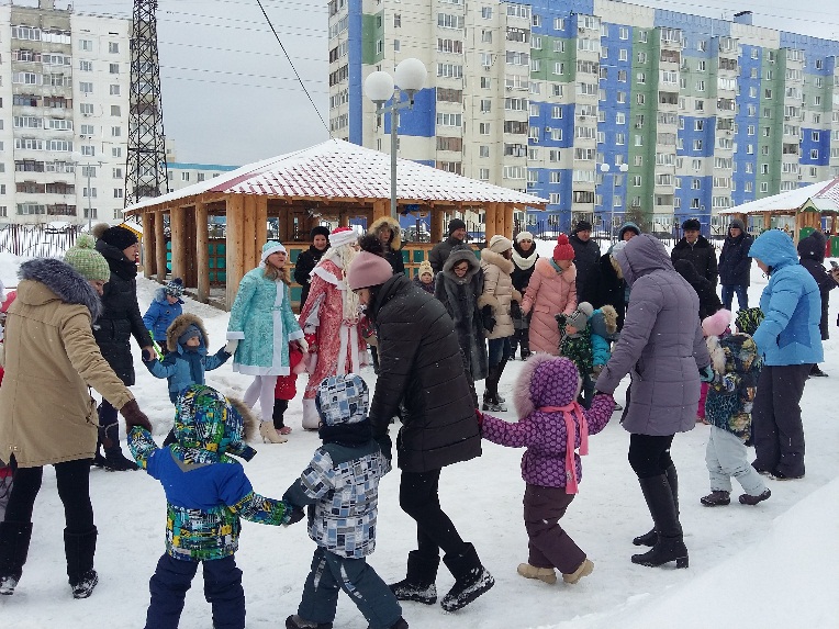 На территории детского сада состоялся праздник «Зимние забавы». Сказочные персонажи Дед Мороз и Снегурочка открыли мероприятие и поздравили всех присутствующих с Новым Годом. Затем повеселили детей и взрослых различными конкурсами, хороводами и песнями. А в заключении……подарки от Деда Мороза.