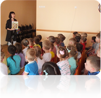 Во второй половине дня для воспитанников старшего дошкольного возраста было проведено тематическое занятие «Мы тоже служили Родине. Животные на войне», которое подготовила заведующая абонементом детского чтения ЦГПБ им. В.Г.Белинского Людмила Николаевна Свитнева.