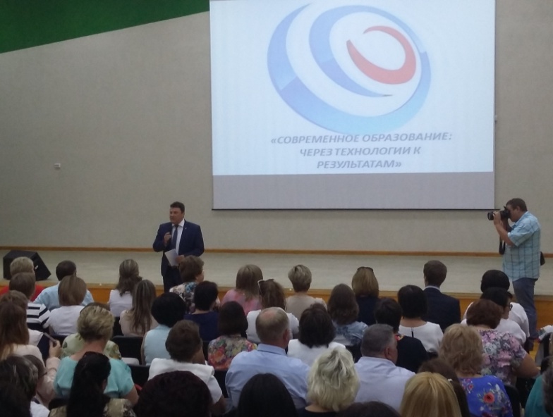 На базе МБОУ СОШ им. М.Ю. Лермонтова с. Засечное (город-Спутник) проводился областной августовский педагогический форум «Современное образование: через технологии к результатам». С приветственным словом ко всем присутствующим выступил министр образования Пензенской области Александр Геннадьевич Воронков.