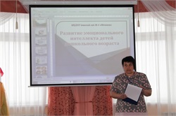 Начался семинар с выступления педагога-психолога нашего детского сада Ольги Николаевны Воробьёвой, которая подняла проблему развития эмоционального интеллекта детей дошкольного возраста и рассказала о программе «Академия Монсиков», которая внедряется в детском саду с октября 2017 года.