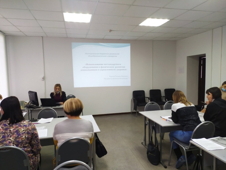 Тема, которая была представлена педагогам города, — «Использование нестандартного оборудования в физическом развитии дошкольников и укреплении их здоровья».