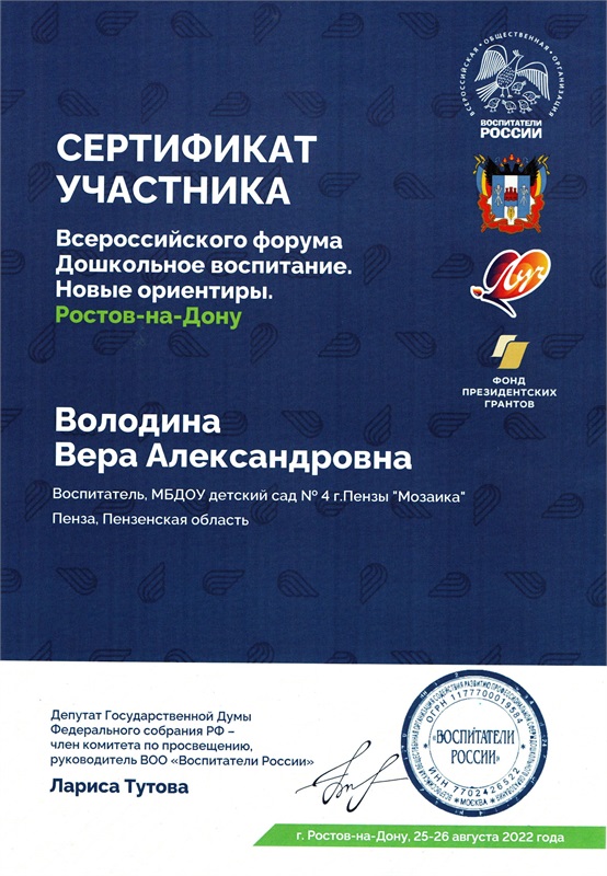 Воспитатель нашего детского сада Вера Александровна Володина вместе с педагогическими работниками и руководителями образовательных организаций со всей России, а также делегаций ДНР и ЛНР, познакомились и обсудили региональный опыт и лучшие оздоровительные практики в детском саду и семье.