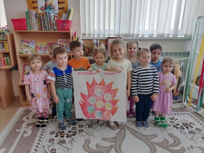В группе «Веснушки» воспитатель (Никитина Т.А) вместе с детьми сделали коллаж «Осторожно! Пожар».