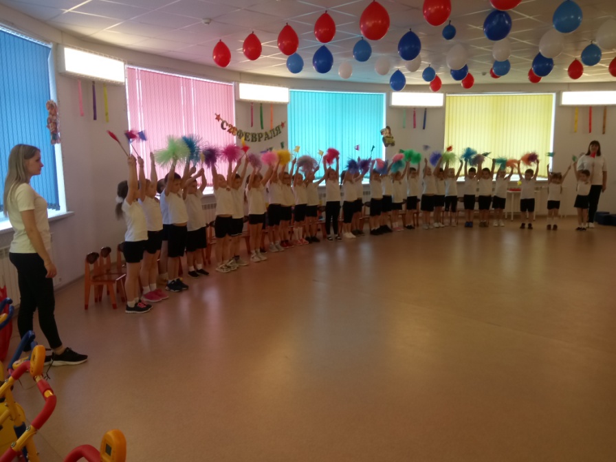 21 февраля в преддверии праздника Дня защитника Отечества в детском саду проходил уже традиционный музыкально-спортивный праздник. На празднике воспитанники пели песни и читали стихи о защитниках России, приняли участие в увлекательных конкурсах и играх. Дети показали всю свою ловкость, силу и смекалку. В зале царили смех, шум и веселье!