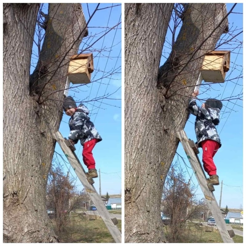После выставки дети вместе с родителями повесили скворечники для пернатых друзей.