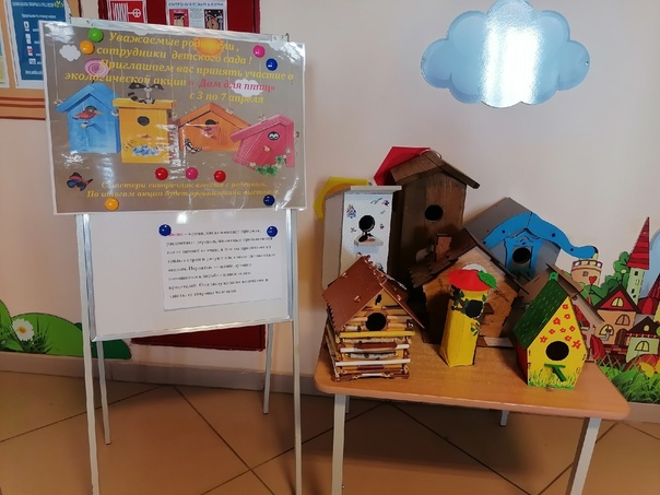 Работа по изготовлению скворечников проводилась дома совместно с родителями. Сколько стараний и любви приложили они к своей работе и принесли в детский сад на выставку уже готовые домики.