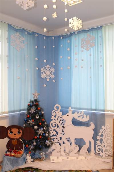 Все постарались придать праздничную атмосферу обычным групповым комнатам, и в результате совместных усилий педагогов, родителей, как по волшебству преобразились. В оформлении каждой группы была своя «изюминка», в каждой группе присутствовала зимняя сказка.