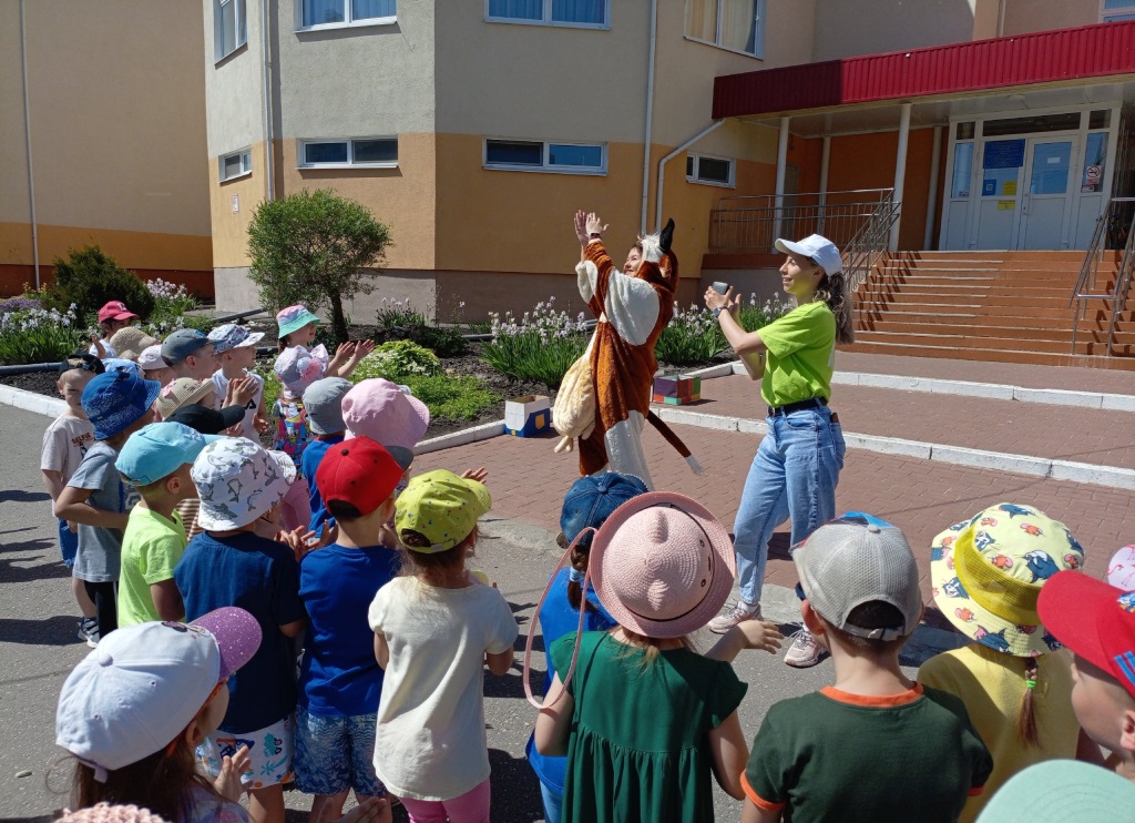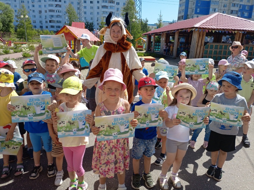 Также детей посетила «корова», которая рассказала им о пользе молока, загадывала загадки и танцевала вместе с детьми.