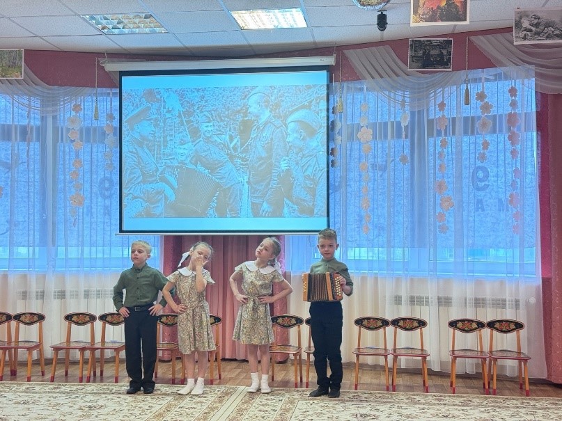 Дети пели песни, читали военные стихи, совместно с родителями пели «Катюшу».